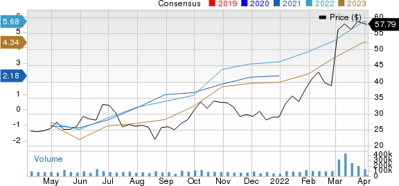 Occidental Petroleum Corporation Price and ConsensusAnd if this wasn’t enough, the stock has actually seen estimates rise over the past month for the current fiscal year by about 27.9%. Thanks to this rise in earnings estimates, OXY has a Rank #1 (Strong Buy) which further underscores the potential for outperformance in this company.