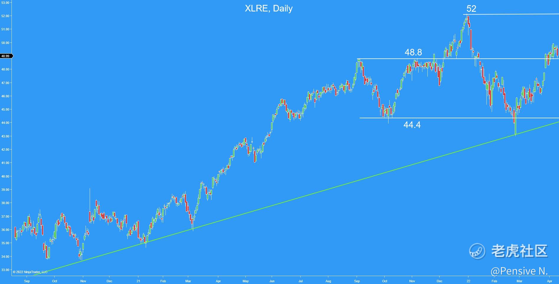 - XLRE hasn’t really taken off after breaking out of its range last week, but it hasn’t fallen back down either