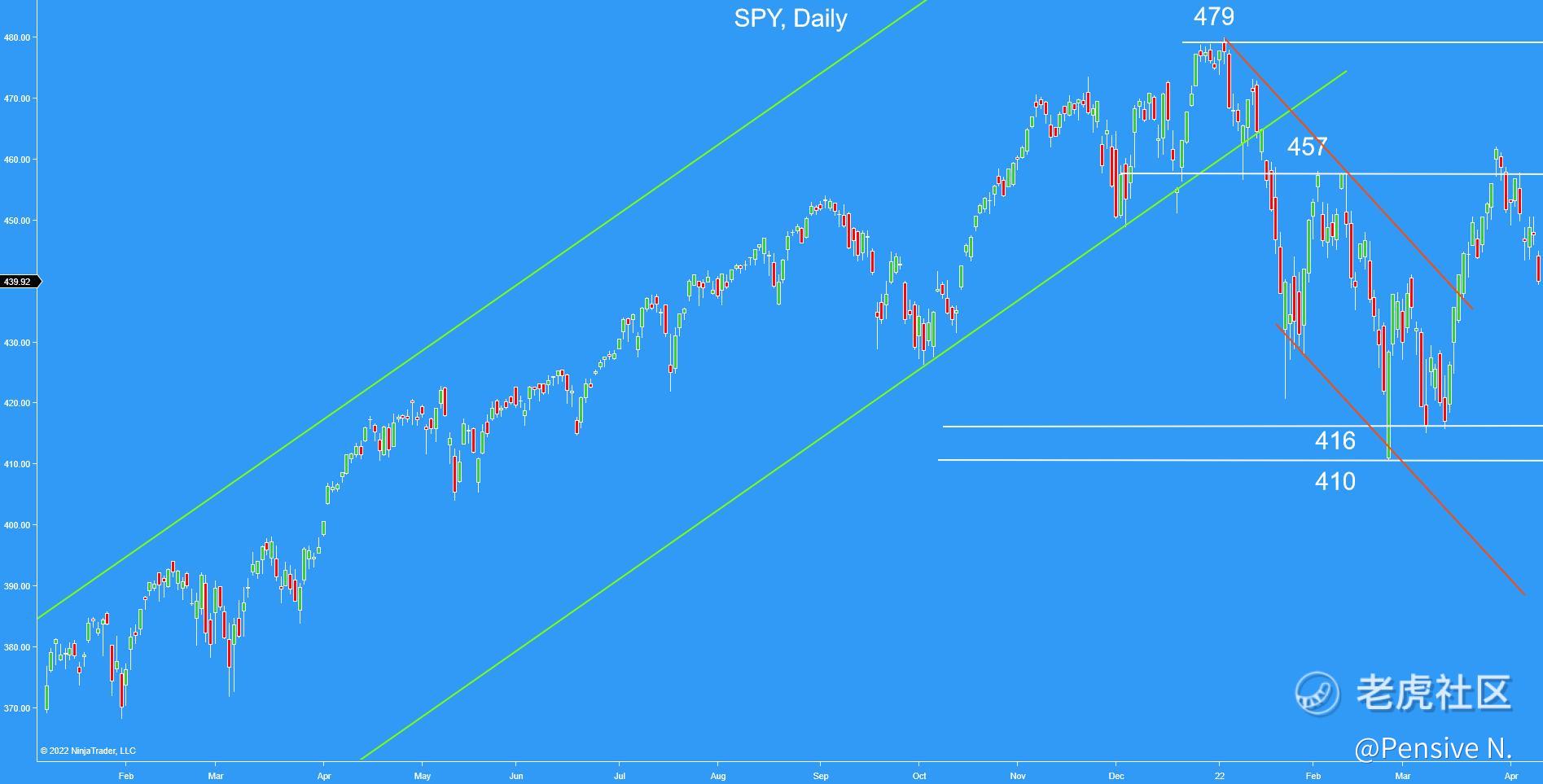 - $410 and $457 are the key levels to watch for breakouts to the downside/upside respectively