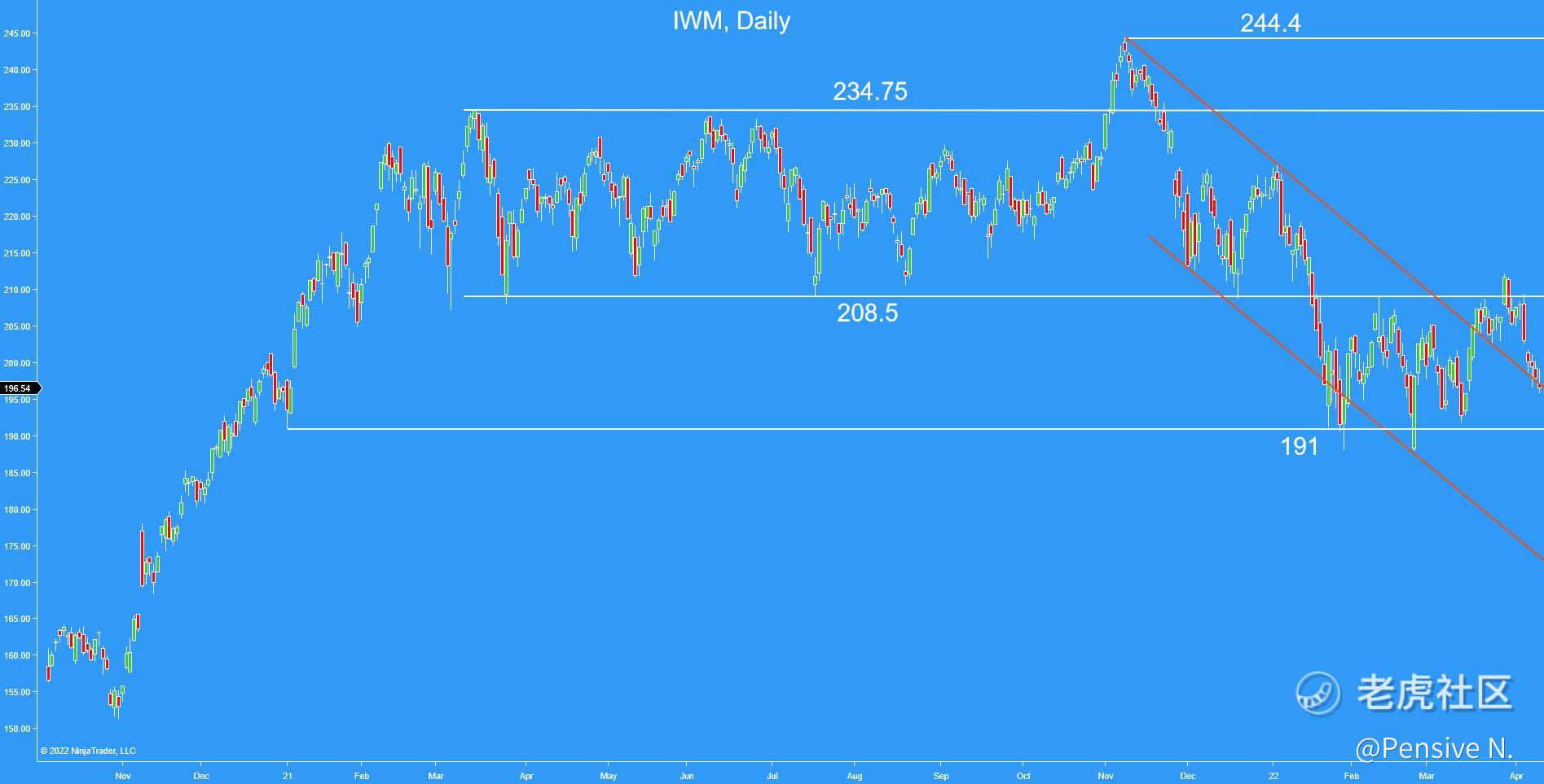 - IWM is still trading sideways, with a downside break looking more and more possible
