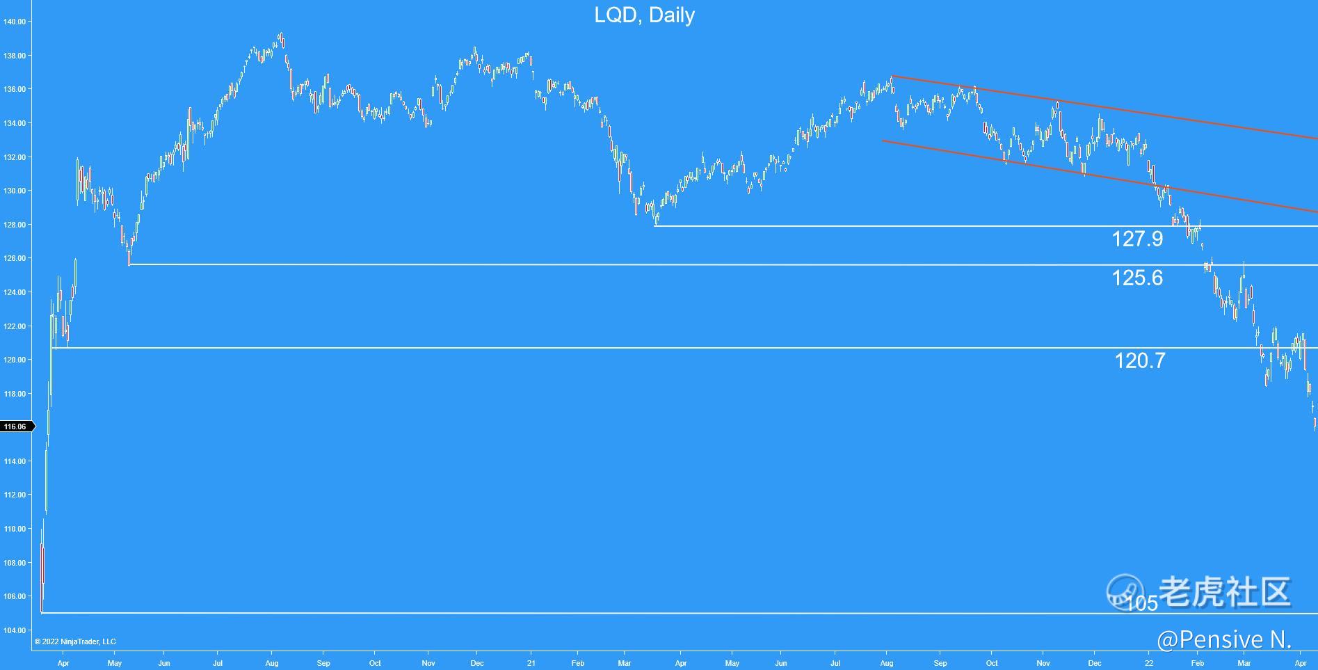 - LQD has sold off sharply, below $120.7 support as UST yields rallied (lower prices)