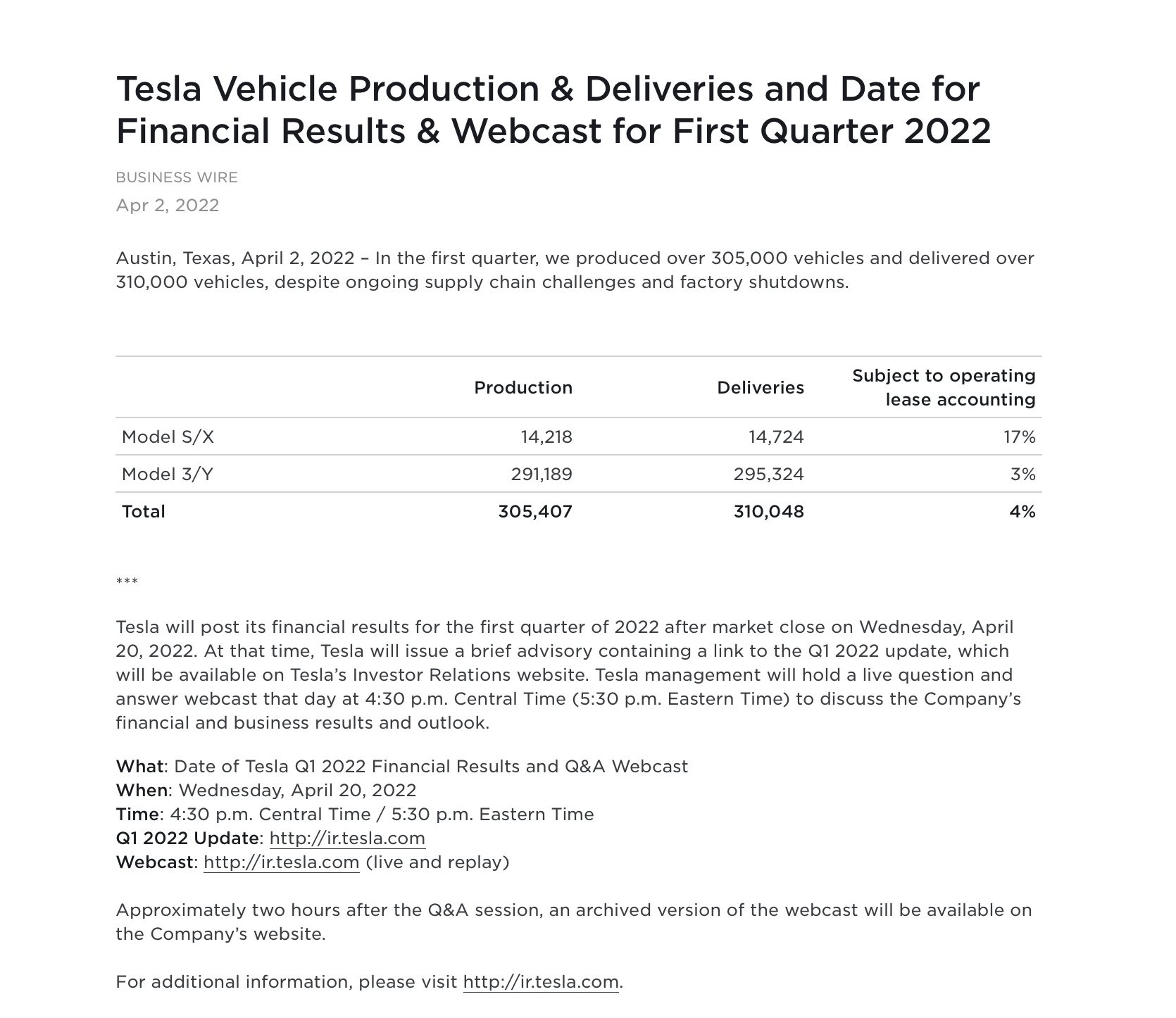 Congrats to Tesla for that 310,048 in Q1! Beating Wall Street expectation of 309k.. once again. đ