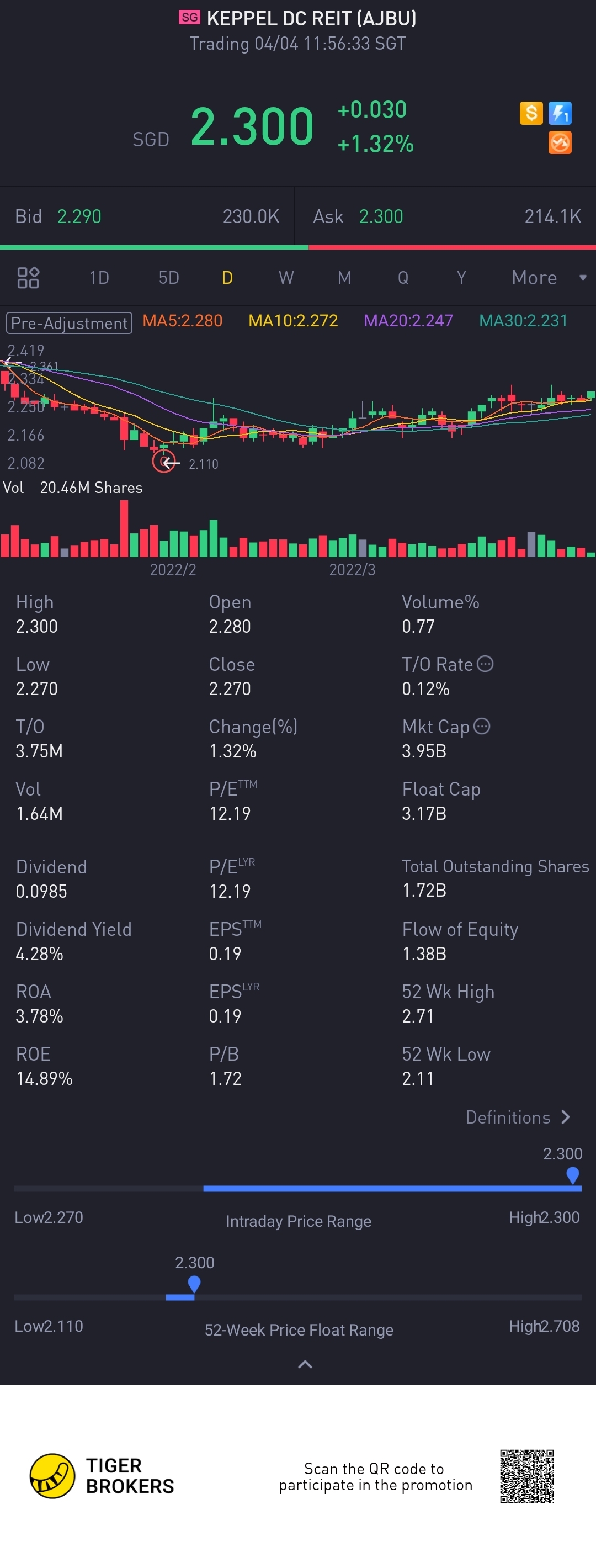 $KEPPEL DC REIT(AJBU.SI)$Seems to be going up today [Happy] [Happy]