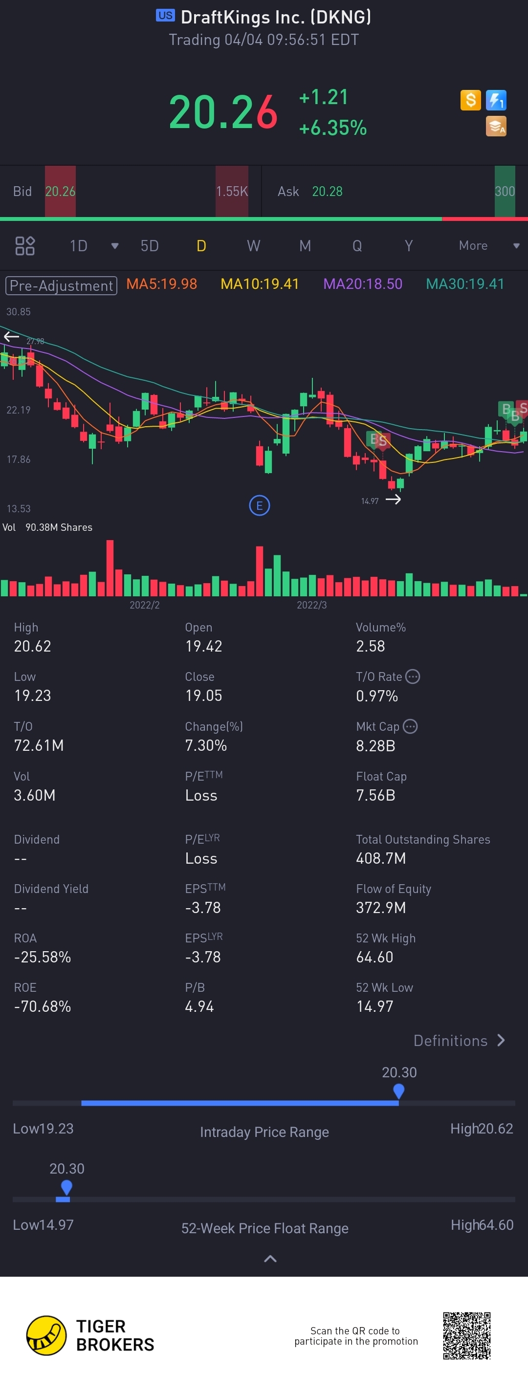 $DraftKings Inc.(DKNG)$i mentioned previously. Chance!