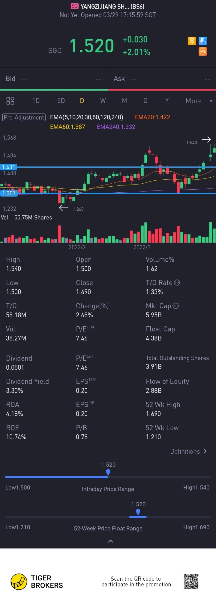 $YANGZIJIANG SHIPBLDG HLDGS LTD(BS6.SI)$price strong uptrend