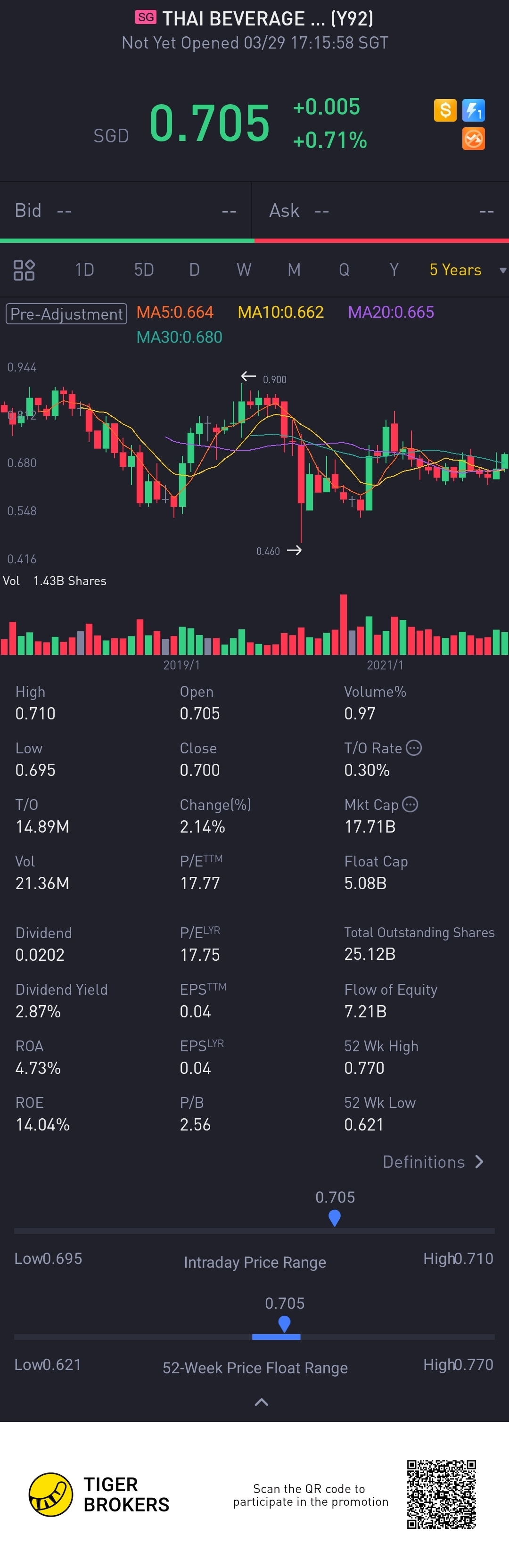 $THAI BEVERAGE PUBLIC CO LTD(Y92.SI)$good