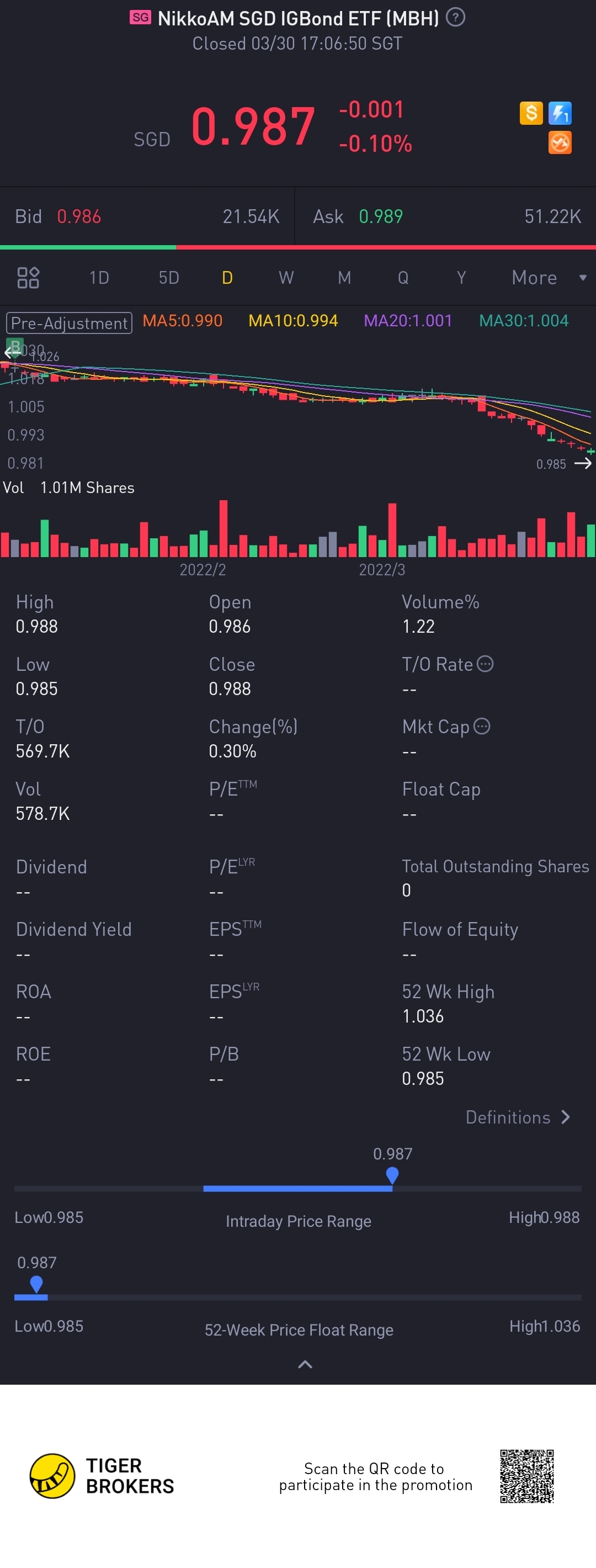 $NikkoAM SGD IGBond ETF(MBH.SI)$Bought this bond at the start of my investment journey, learning things along the way [smile]