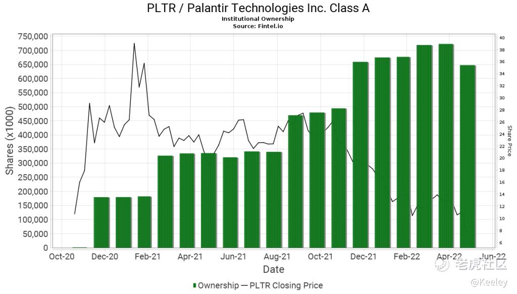 We saw a decline in institutional ownership recently. With the share price getting beaten down as earning missed expectations. For institutional ownership to increase, we will need to see the company start to be consistently profitable. As such, share price of Palantir is subject to volatility in retail trading.
