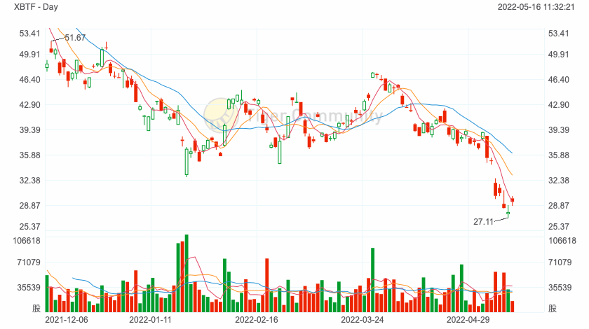 VanEck Bitcoin Strategy ETF (XBTF) is an actively managed fund that launched in November 2021. XBTF aims to track the price of Bitcoin by investing in BTC futures and may invest some of its assets in Treasuries and cash.