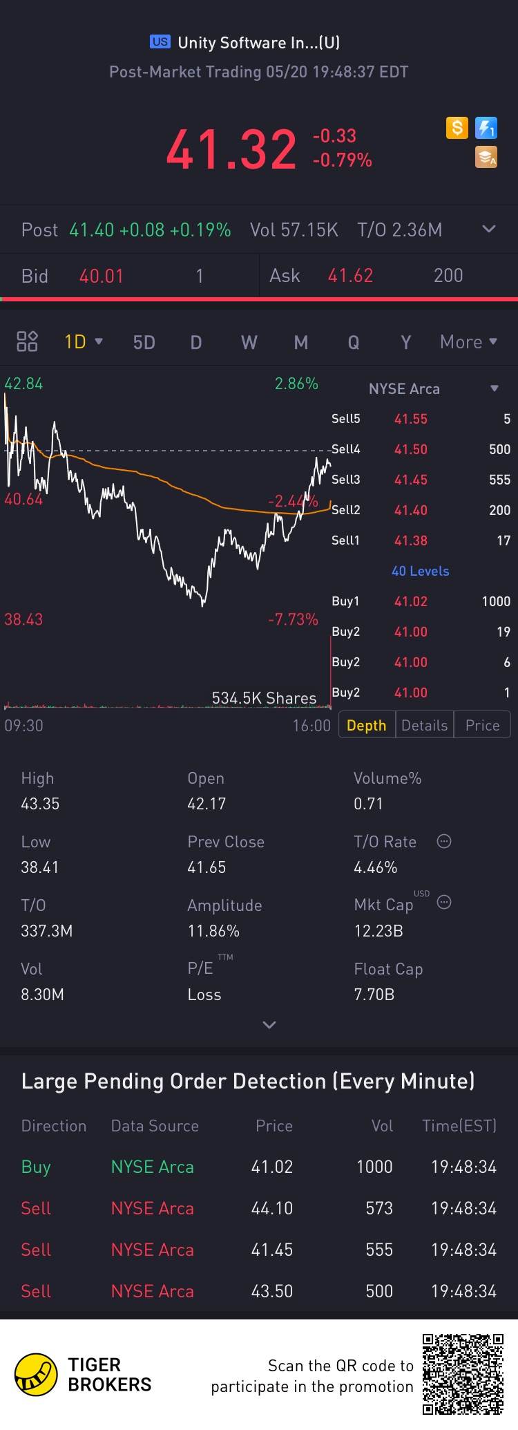 $Unity Software Inc.(U)$Hit bottom time to U turn upwards
