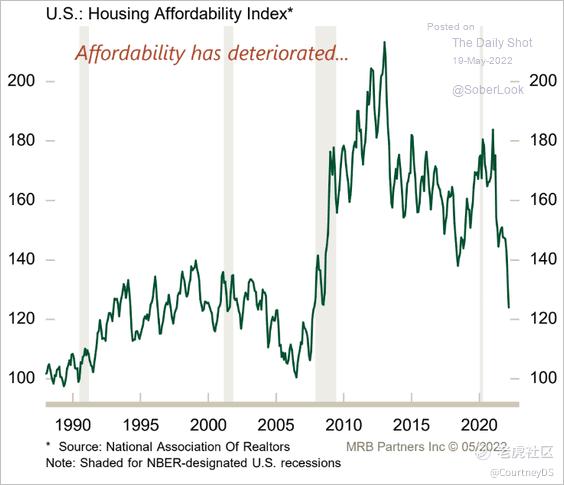 Second, the Fed is hiking interest rates. But, so far, they have only hiked a little bit though they say they are going to hike by 50 bp in each of the next two meetings. That still leaves mortgage rates at low levels compared to the long past. But the problem is that mortgage rates are also skyrocketing compared to the near past. That shock of sharply higher rates is what causes people to stop and think before buying a house.