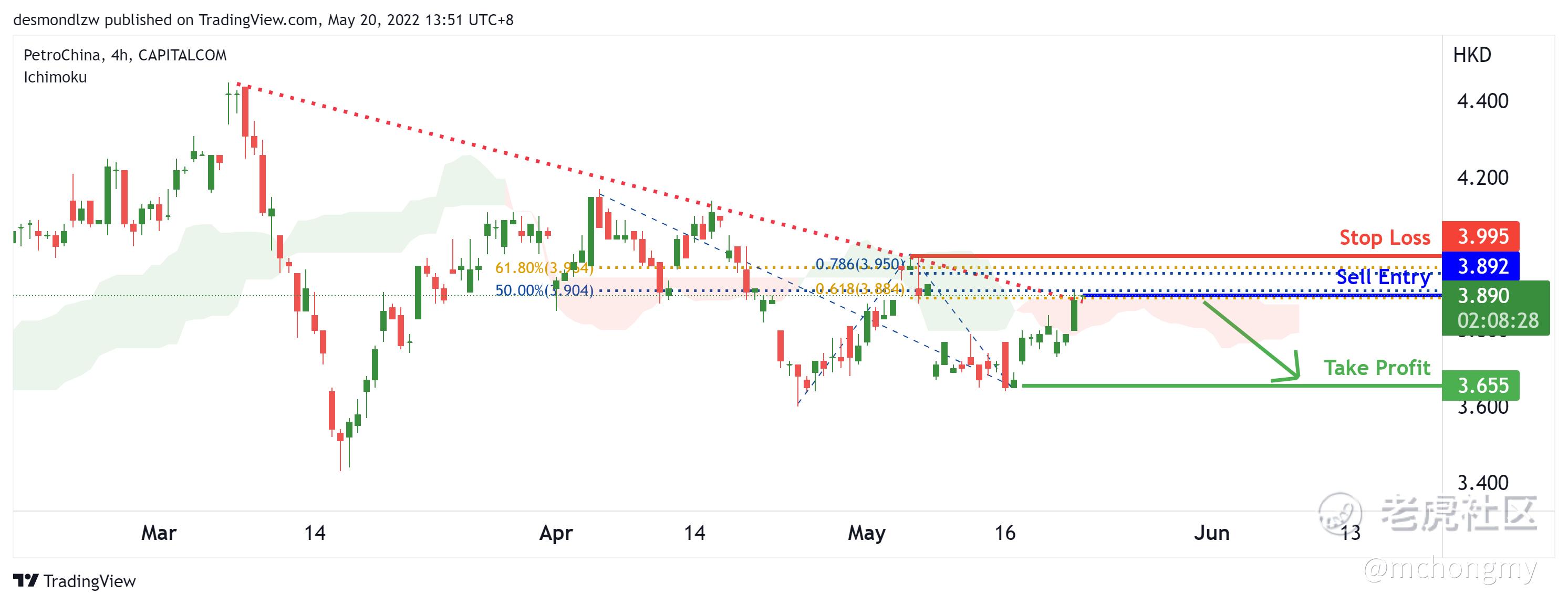 Price has been moving in a descending trendline and is below ichimoku cloud, which supports my bearish bias. However, i will only go in for a sell if price breaks through the level of support at 3.892 in line with the 50% fibonacci retracement and 61.8% fibonacci projection. There is a high level of barrier at the first level of resistance, 3.995, due to the area of confluence from the 78.6% fibonacci projection and 61.8% fibonacci retracment, which could result in a reversal.