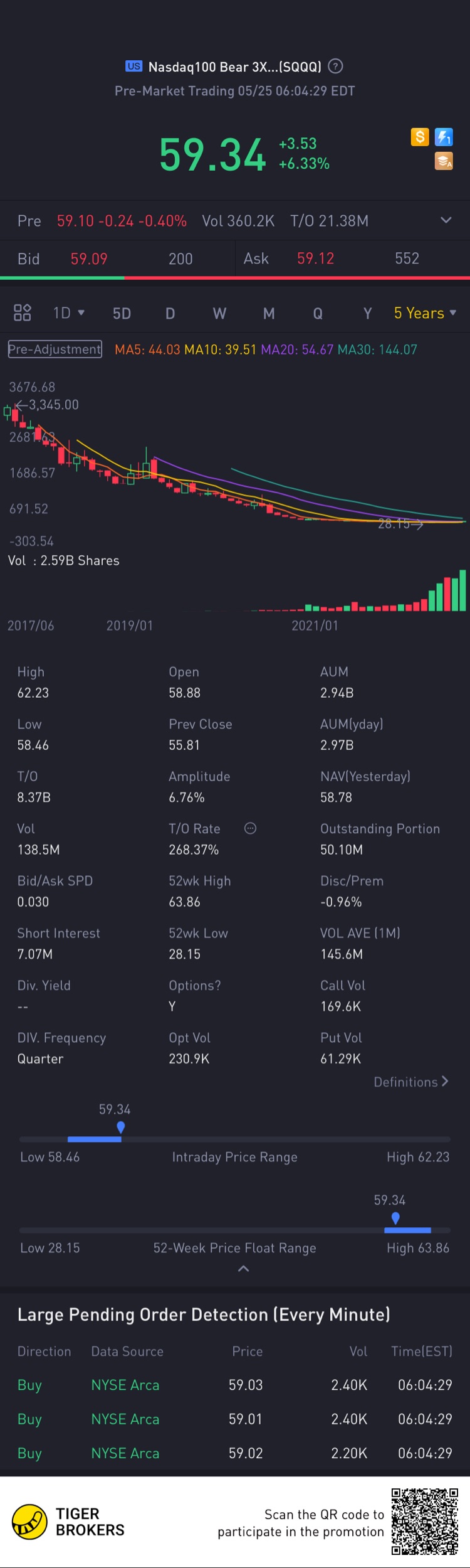 $Nasdaq100 Bear 3X ETF(SQQQ)$Looking for chance to accumulate more