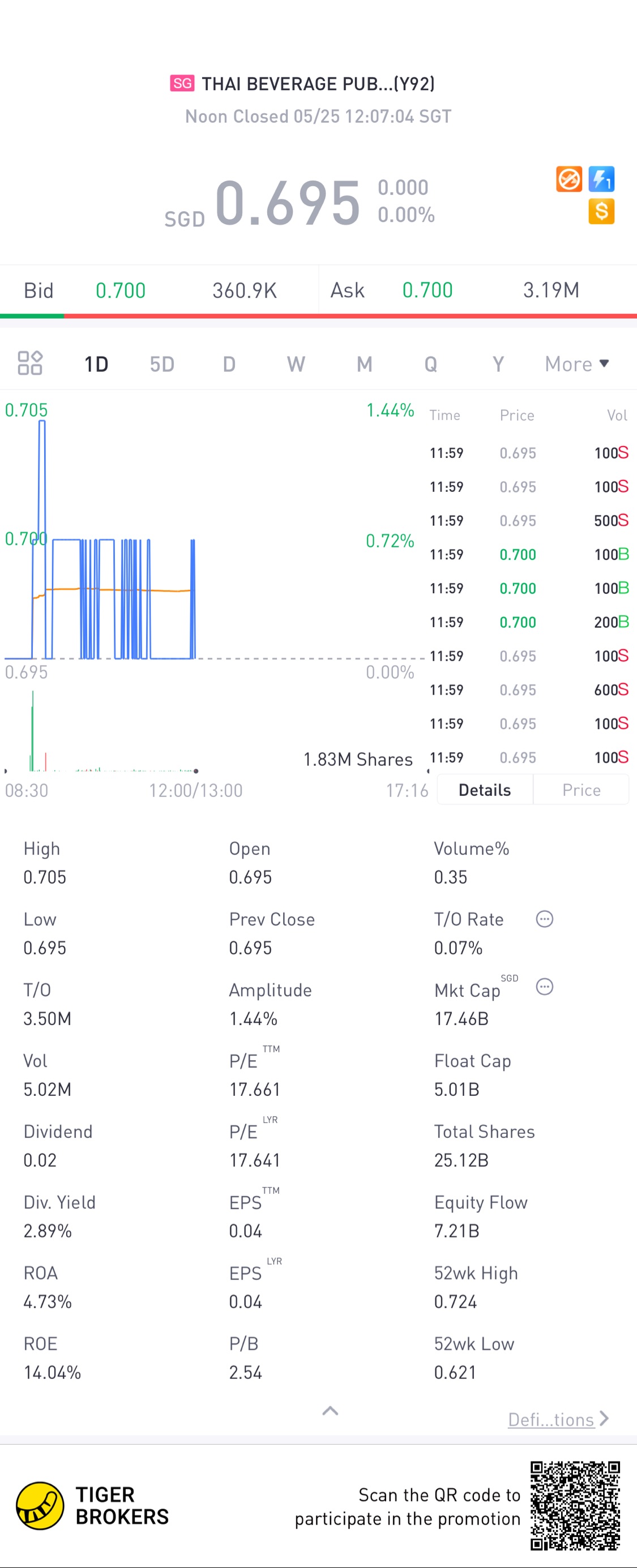 $THAI BEVERAGE PUBLIC CO LTD(Y92.SI)$