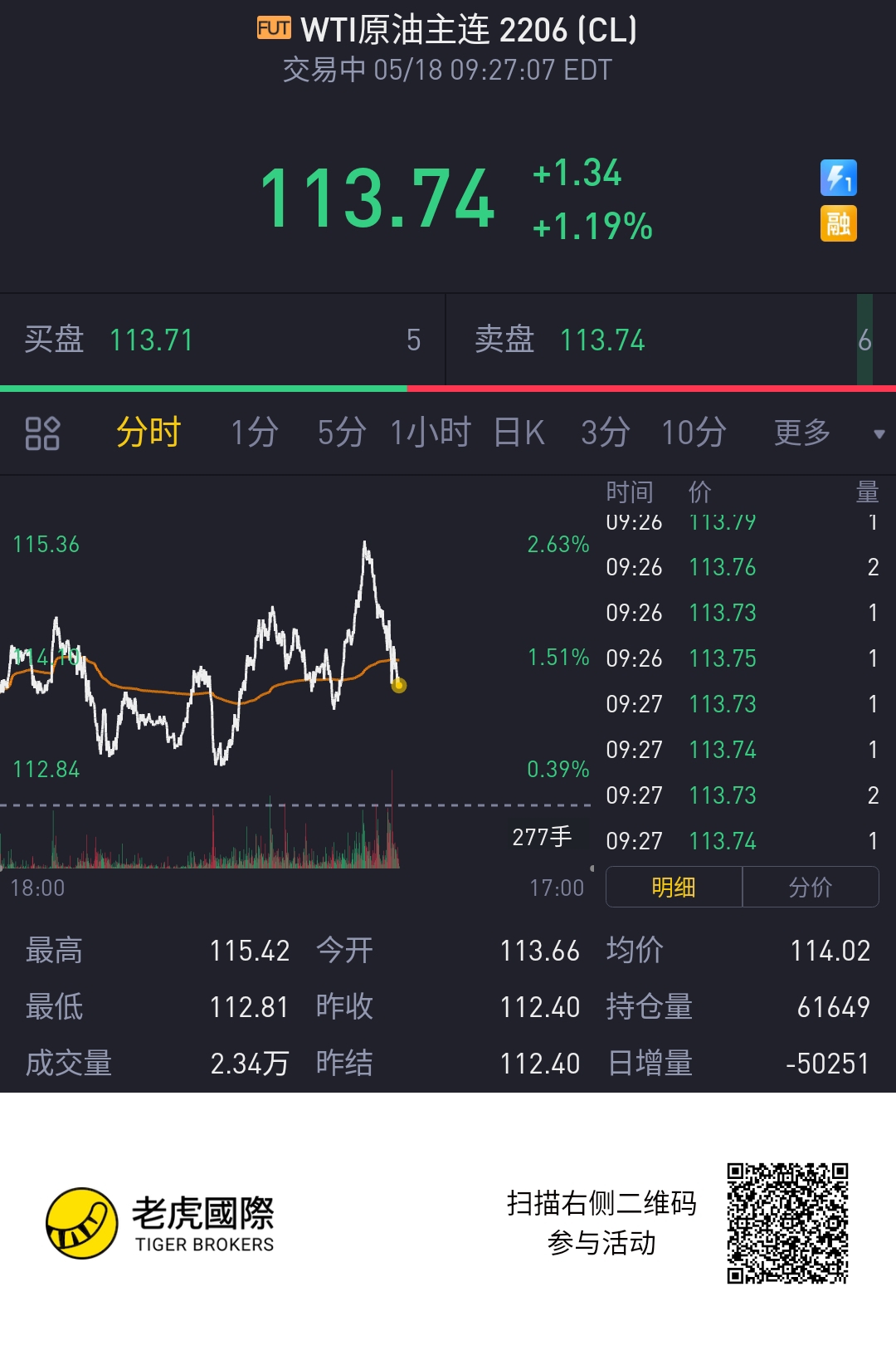$WTI原油主连 2206(CLmain)$aa