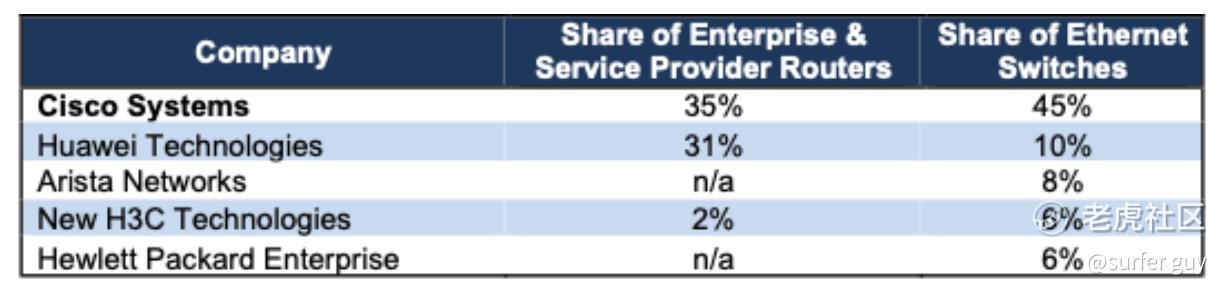 Cisco vs main competitors, share of hardware connecting Internet, 2021. Source: IDC / New Constructs