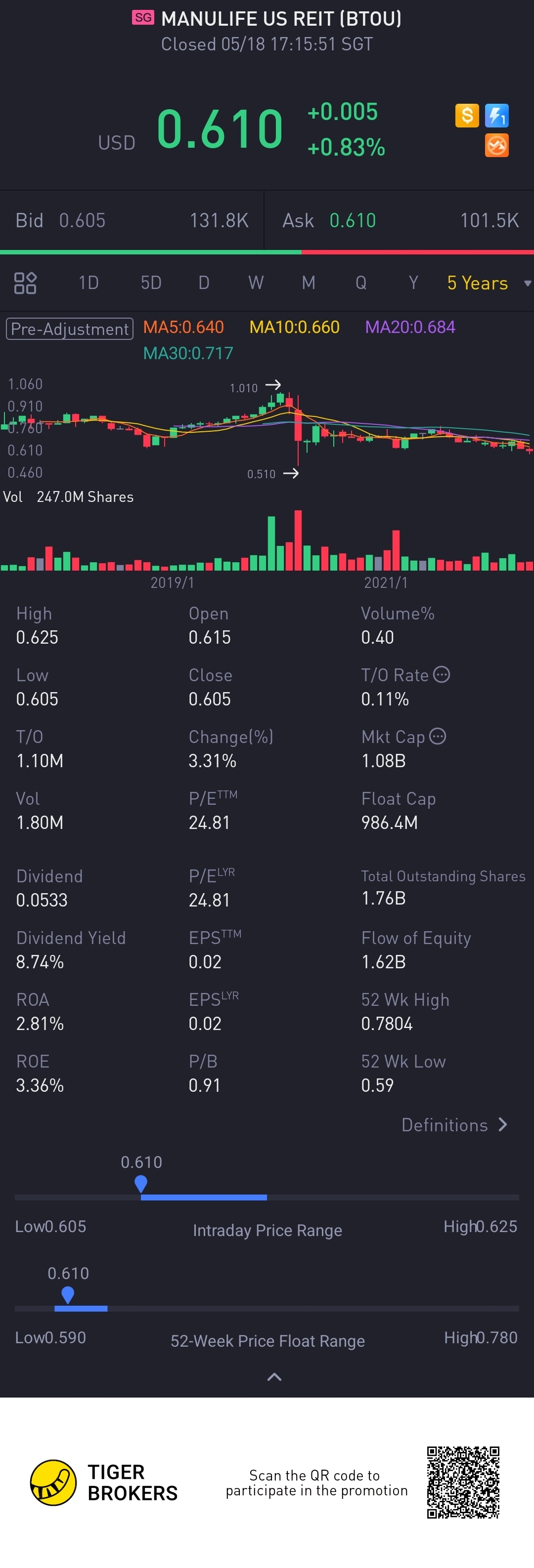 $MANULIFE US REIT(BTOU.SI)$down down down