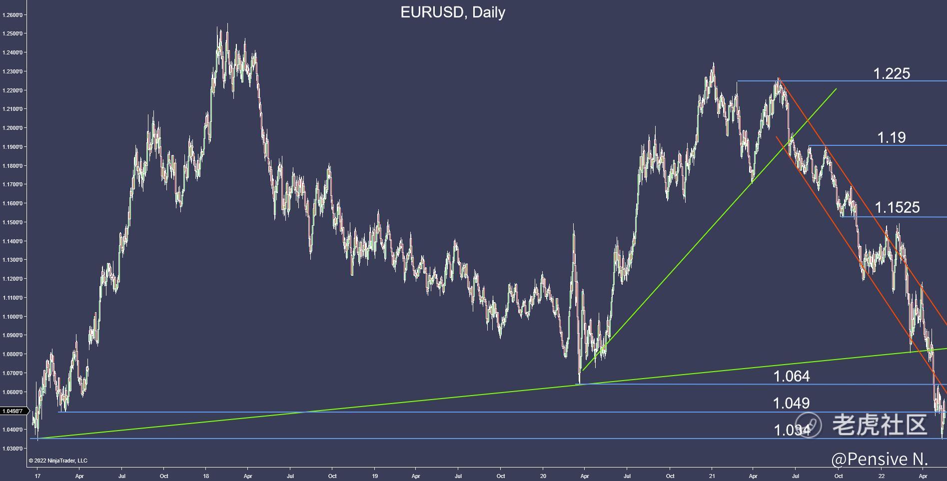 - The chart is extremely bearish, and more lows look likely, especially if support at 1.034 does not hold