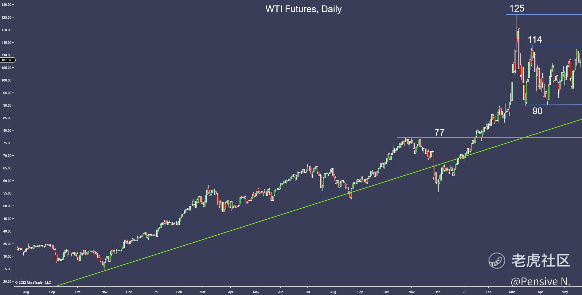 - WTI is still range bound and hasn’t been able to retest its Russian invasion highs