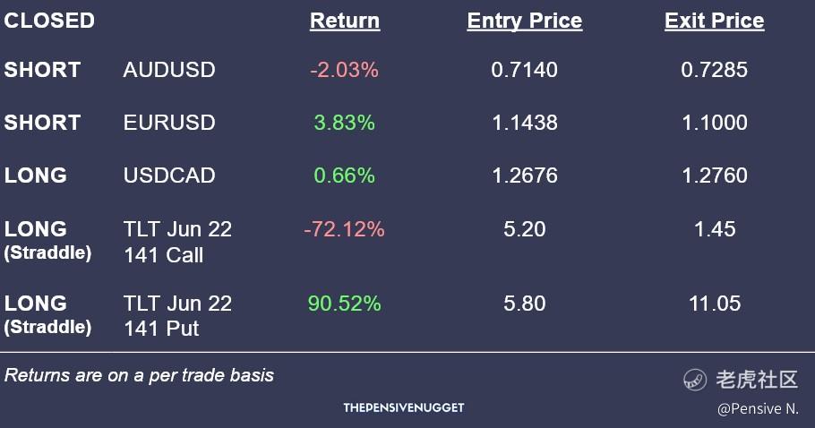 - Exited straddle on TLT in anticipation of long yields turning lower, for a net gain of 18.4%