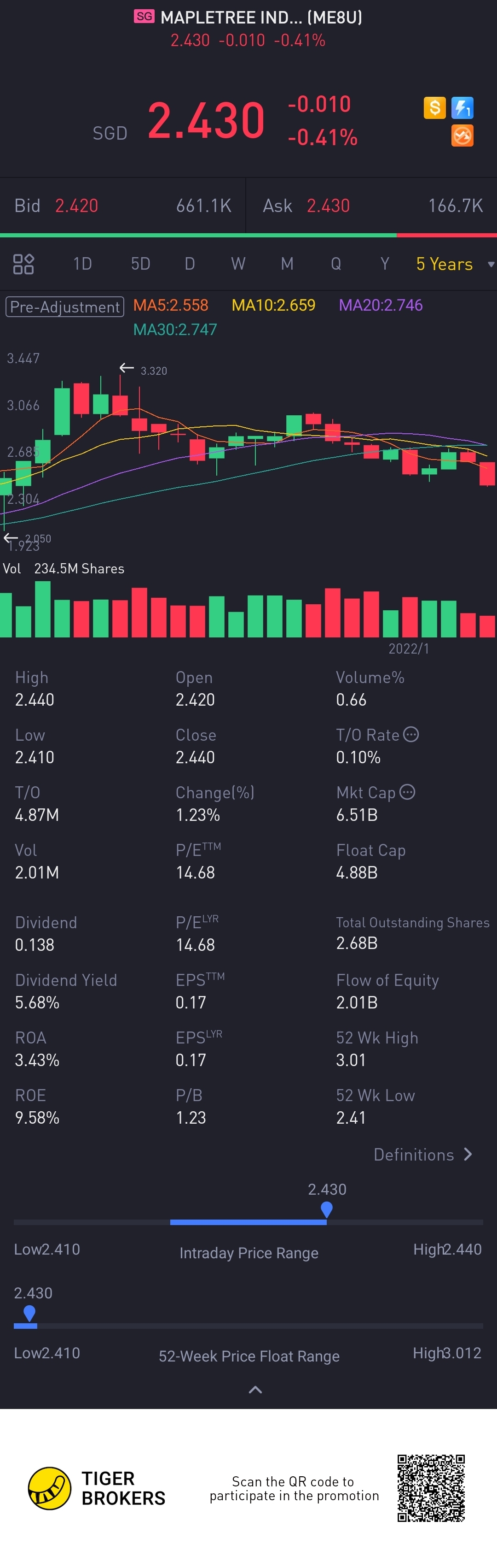 $MAPLETREE INDUSTRIAL TRUST(ME8U.SI)$ Slowly buying into ME8U