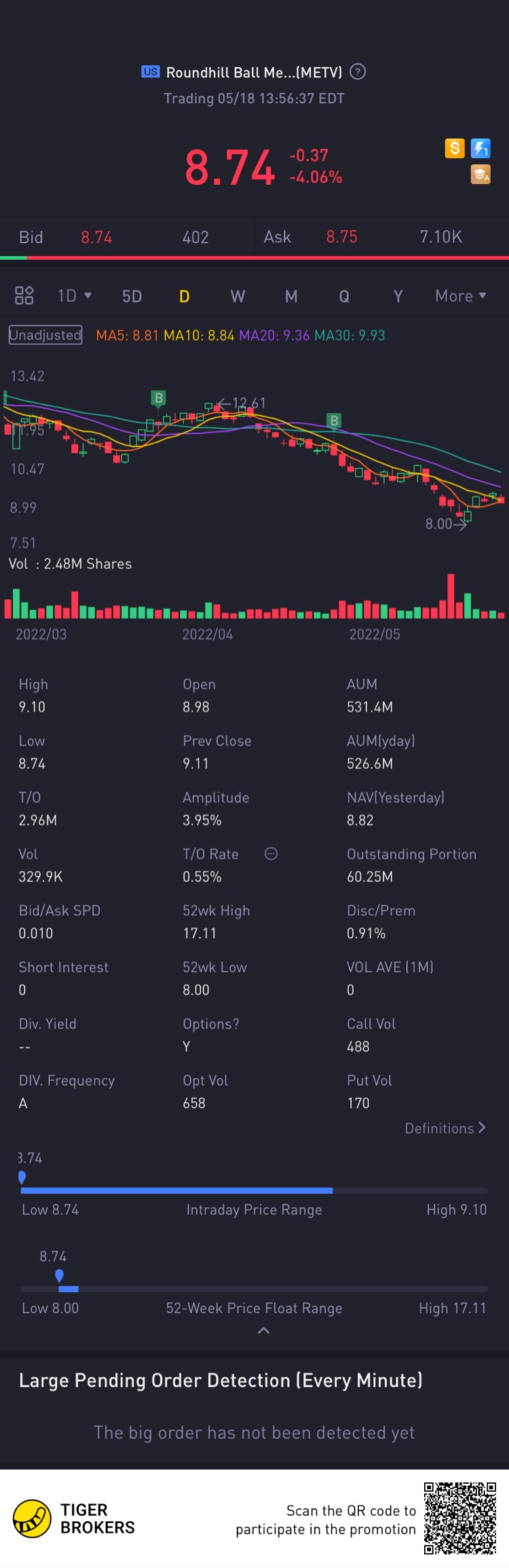 $Roundhill Ball Metaverse ETF(METV)$[Cry] [Cry] [Cry] [Cry]