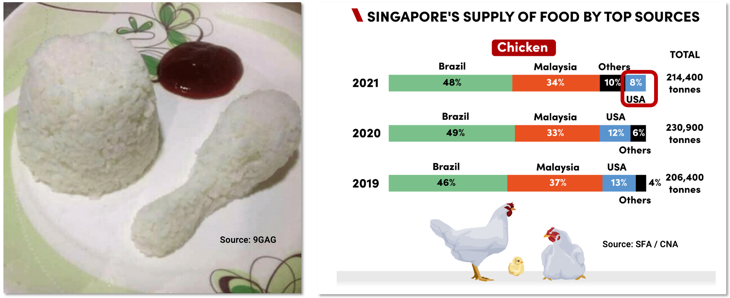 My chicken rice might look like below (1st picture). While the other major source of chicken (likely frozen, but still the same meat) is from Brazil, maybe there is more room to increase supplies from USA, who only made up 8% in 2021.