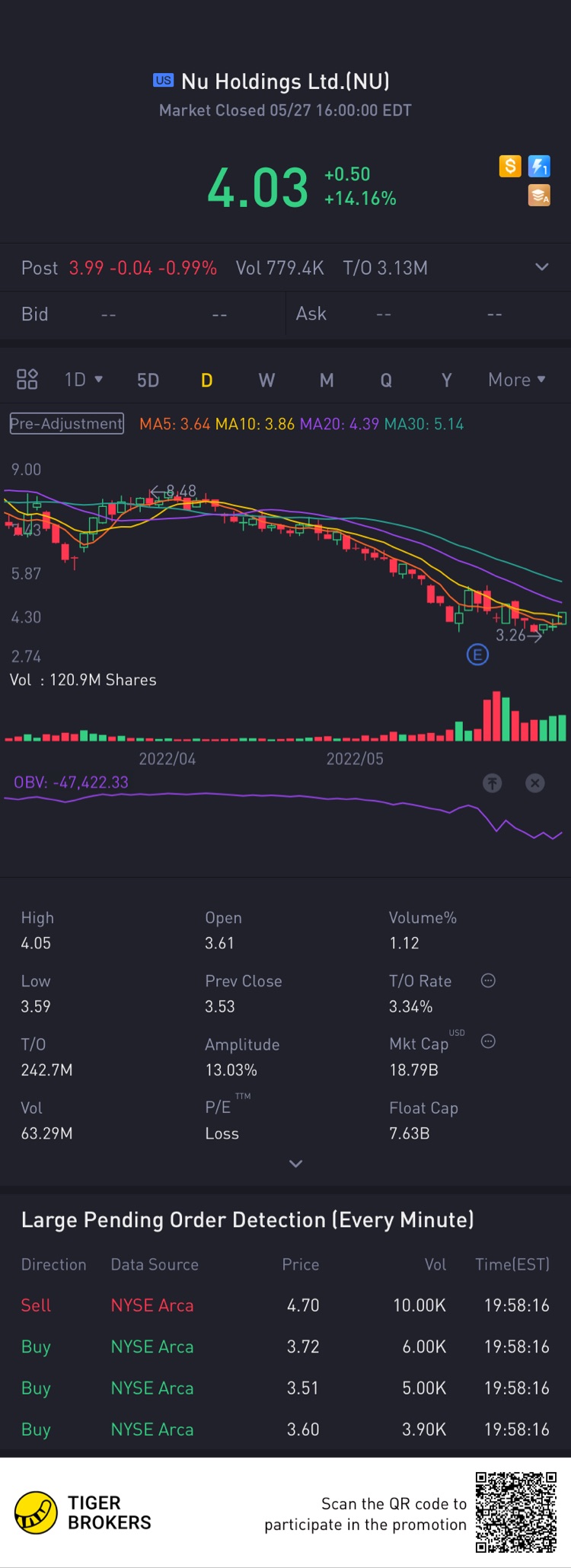 $Nu Holdings Ltd.(NU)$hope it maintains at $4