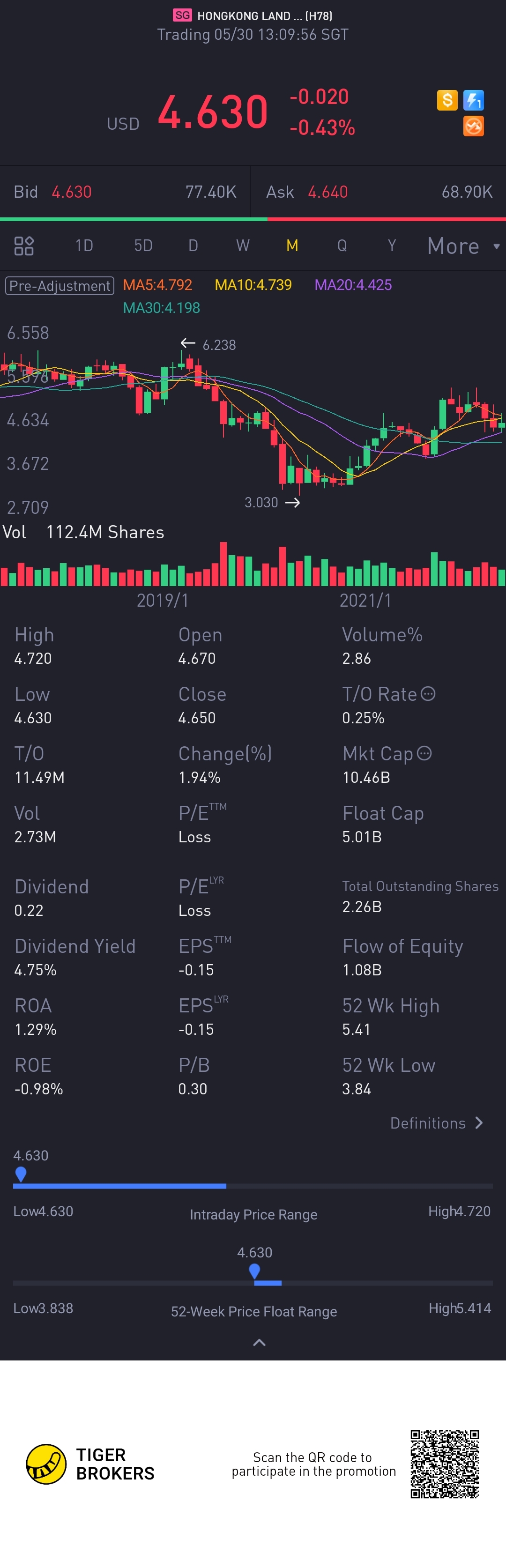 $HONGKONG LAND HOLDINGS LIMITED(H78.SI)$not moving.