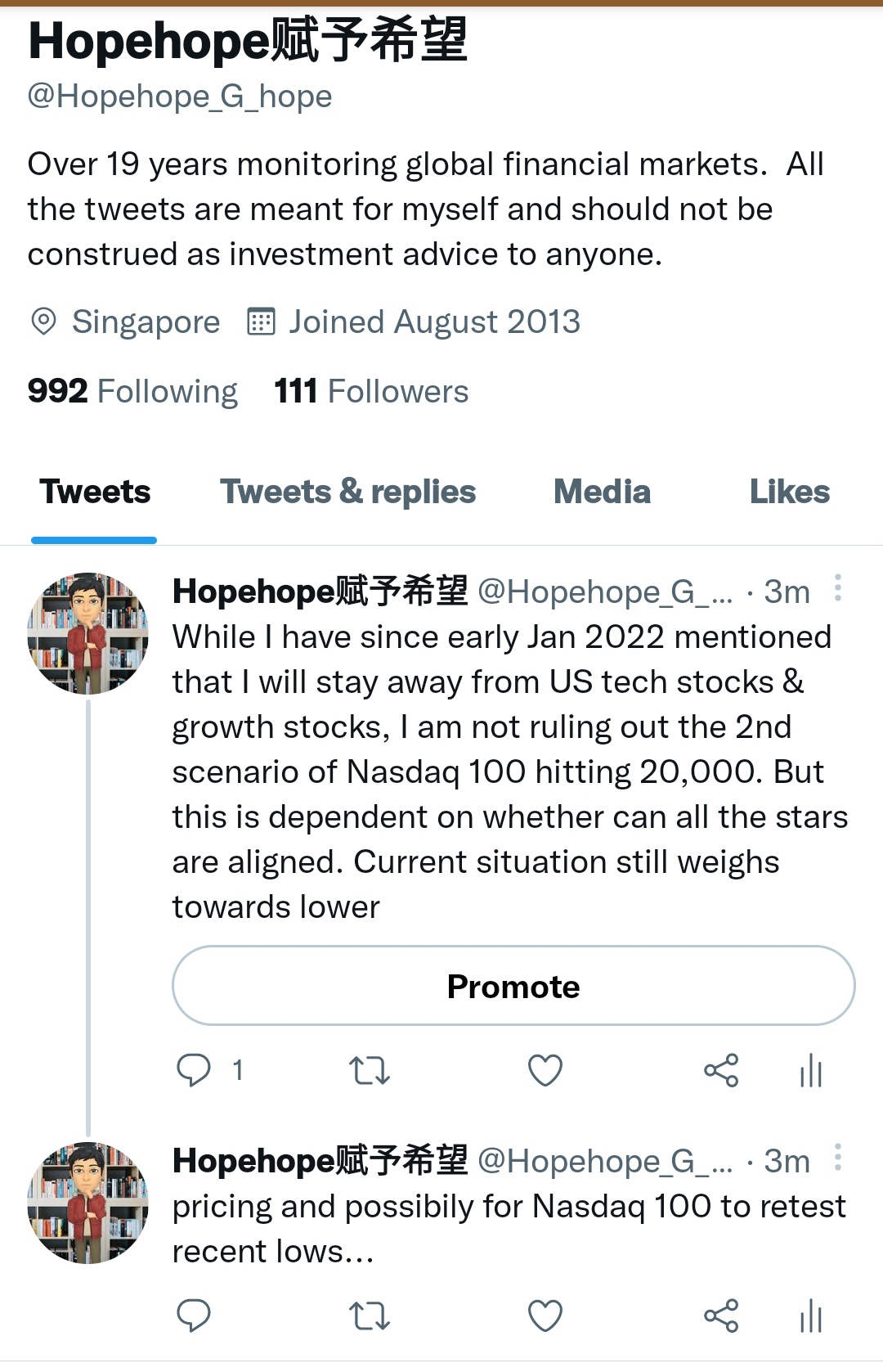 My thoughts of the market. Current pressure is still on the downside with recession risk growing. But if superpowers act collectively, the recession risk can be mitigated and inflation risk can be reduced.