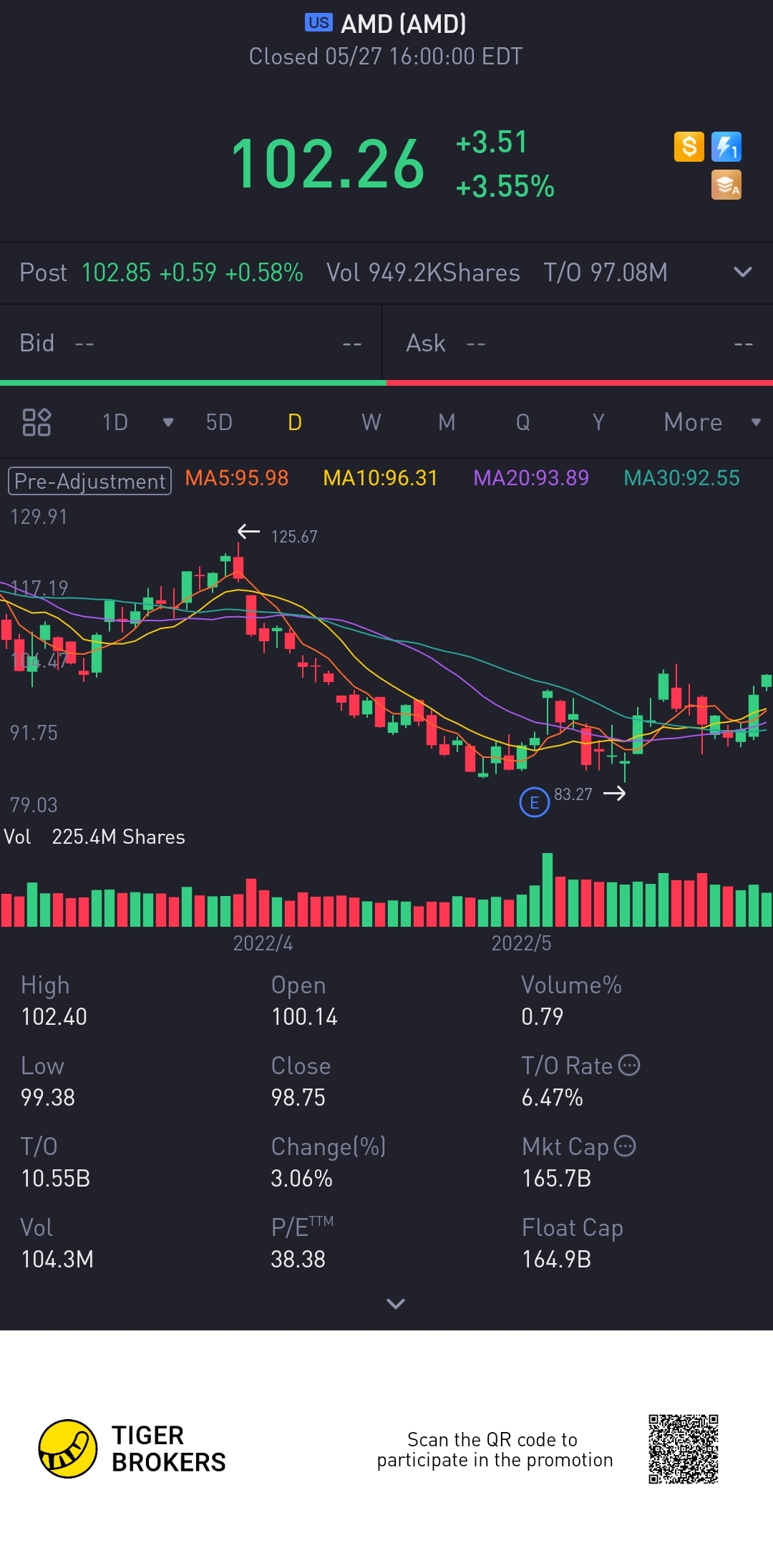 $AMD(AMD)$Grad to see many daily charts are forming higher low and higher high, for example AMD.