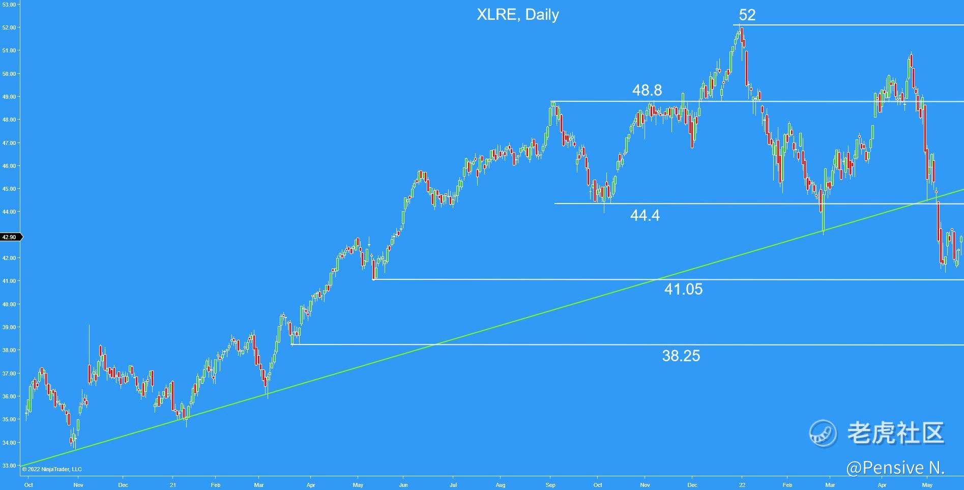 - XLRE has begun to trade sideways between $41.5 — $43.3