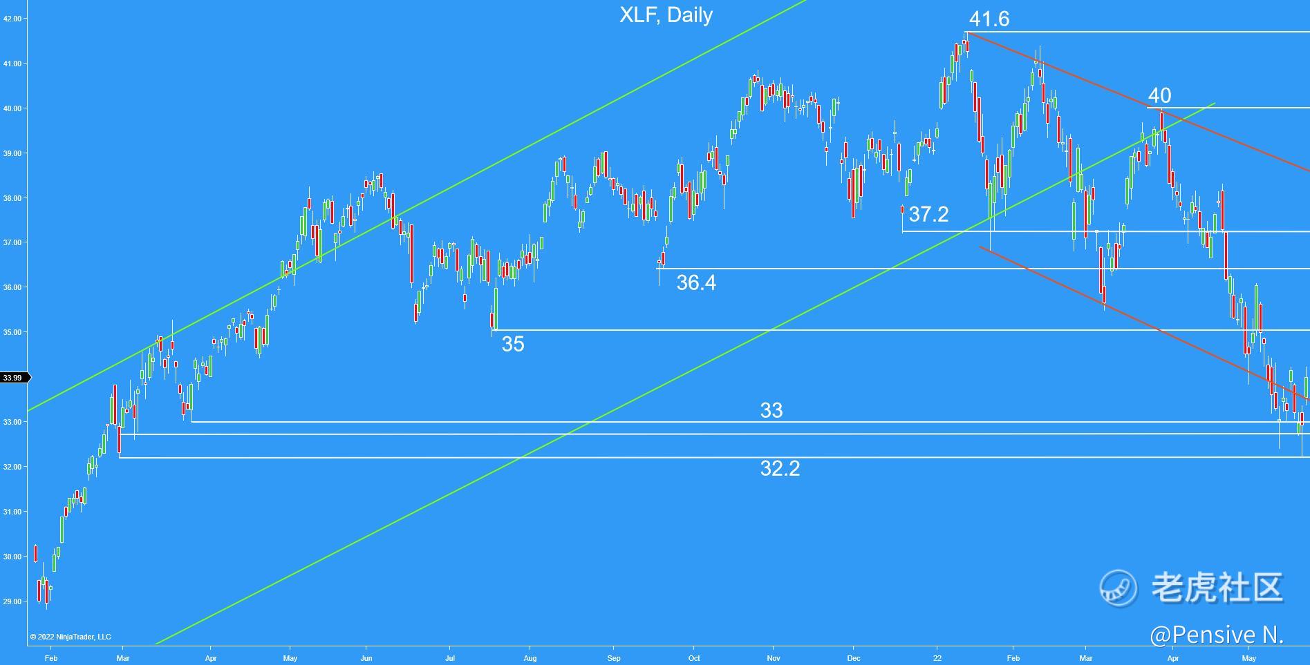 - XLF fell to test support at $32.2, where it bounced strongly, rallying back into its channel