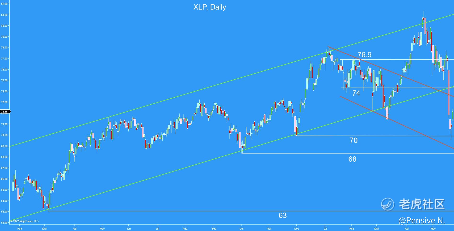 - XLP failed to follow through on last week’s break above $76.9, and has now plummeted out of its bullish channel