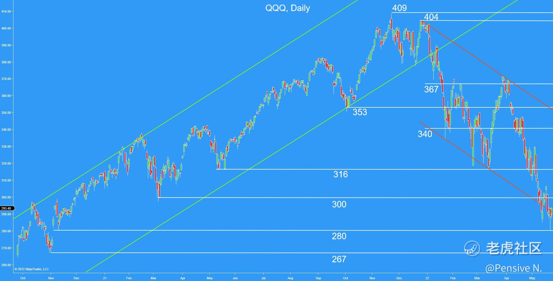 - US tech stocks broke below their bearish channel again, and made a new low for 2022 before catching bids at the $280 support level