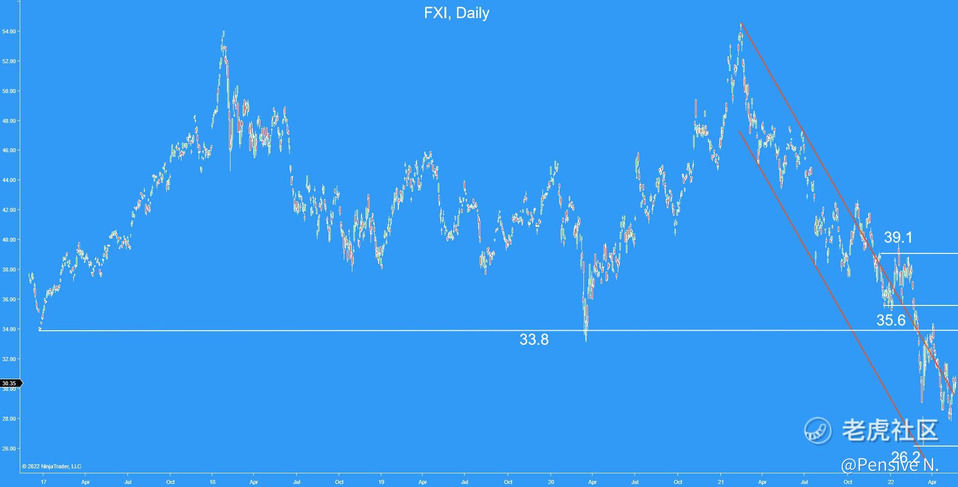 - FXI continued to rally after bouncing 2 weeks ago, and is now trading between key resistance at $33.8, and major support at $26.2
