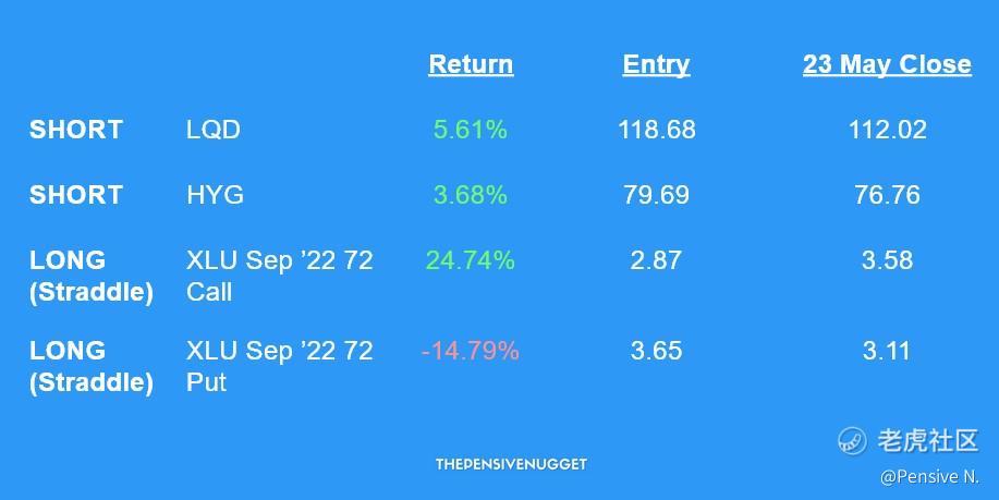- Entered a straddle on XLU at a strike of $72, expiry Sep ‘22
