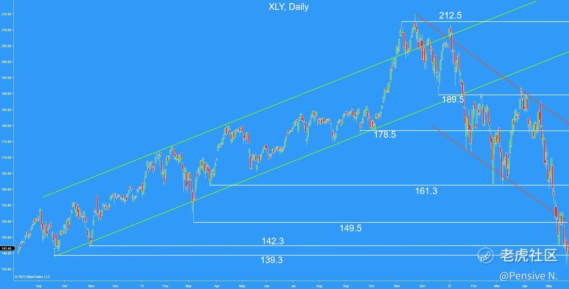 - XLY continues to trade lower, and has fallen to test major support at $139.3