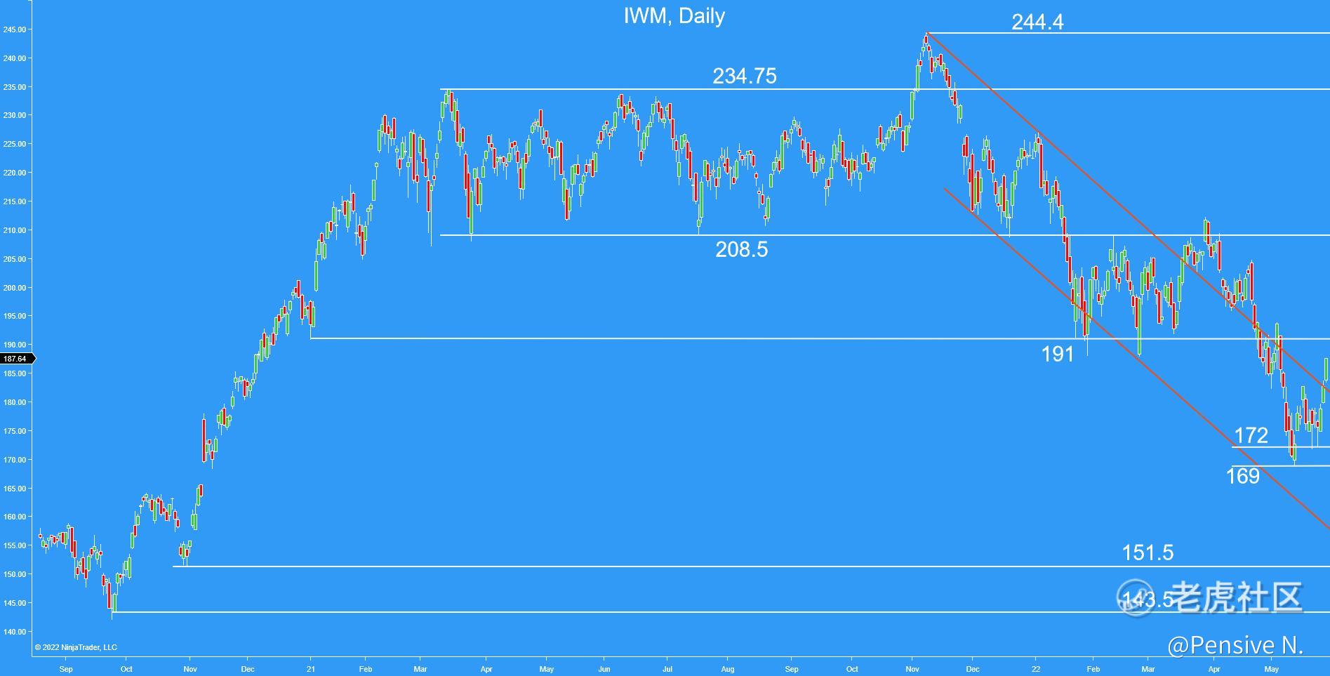 - IWM has broken out to the downside and remains vulnerable to further sell offs even as it bounces, given deteriorating macro conditions