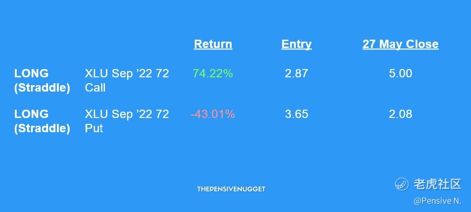 - Entered a straddle on XLU at a strike of 72, expiry Sep ‘22