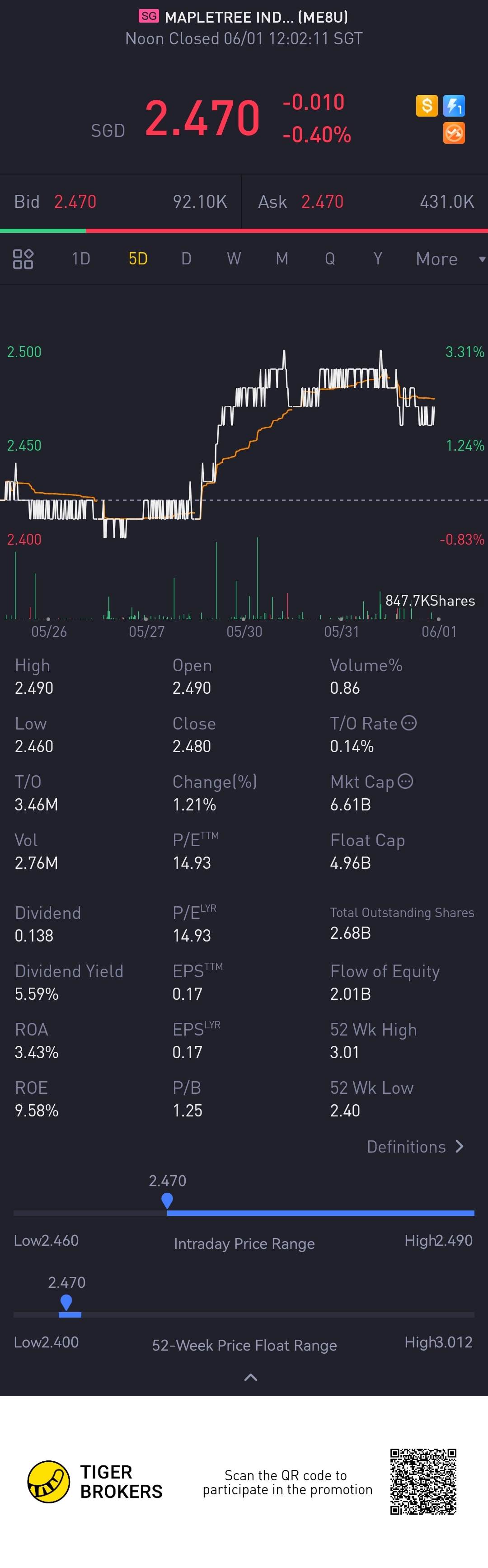 $MAPLETREE INDUSTRIAL TRUST(ME8U.SI)$ payday come but this pattern means can buy or cannot buy? Lol