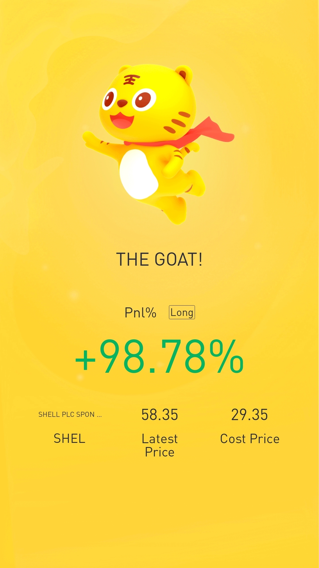 $SHELL PLC SPON ADS EACH REPR 2 ORD SHS(SHEL)$1st time in my trading on TIGR platform encountered such Gain n Also counting on a little bit of Luck. đ