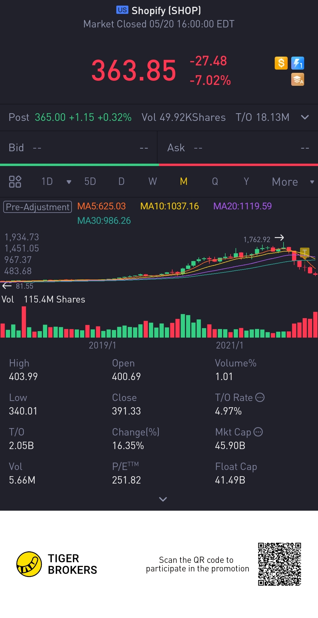 $Shopify(SHOP)$Has trouble even becoming operationally profitable. It seems this year they may only be earning $200 million at most. Its at best now a $30 billion company; estimate a 40% decline from current share price
