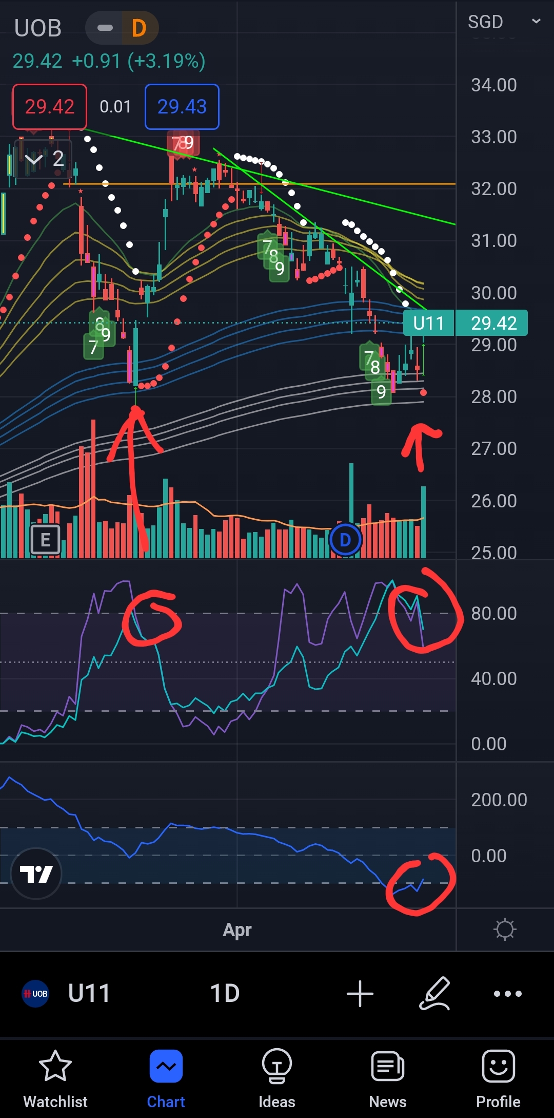 $UNITED OVERSEAS BANK LIMITED(U11.SI)$has pulled back over 10% since hitting a lower high at $32+ in 2nd half of Mar 2022. It has rebounded off the white long term moving averages.