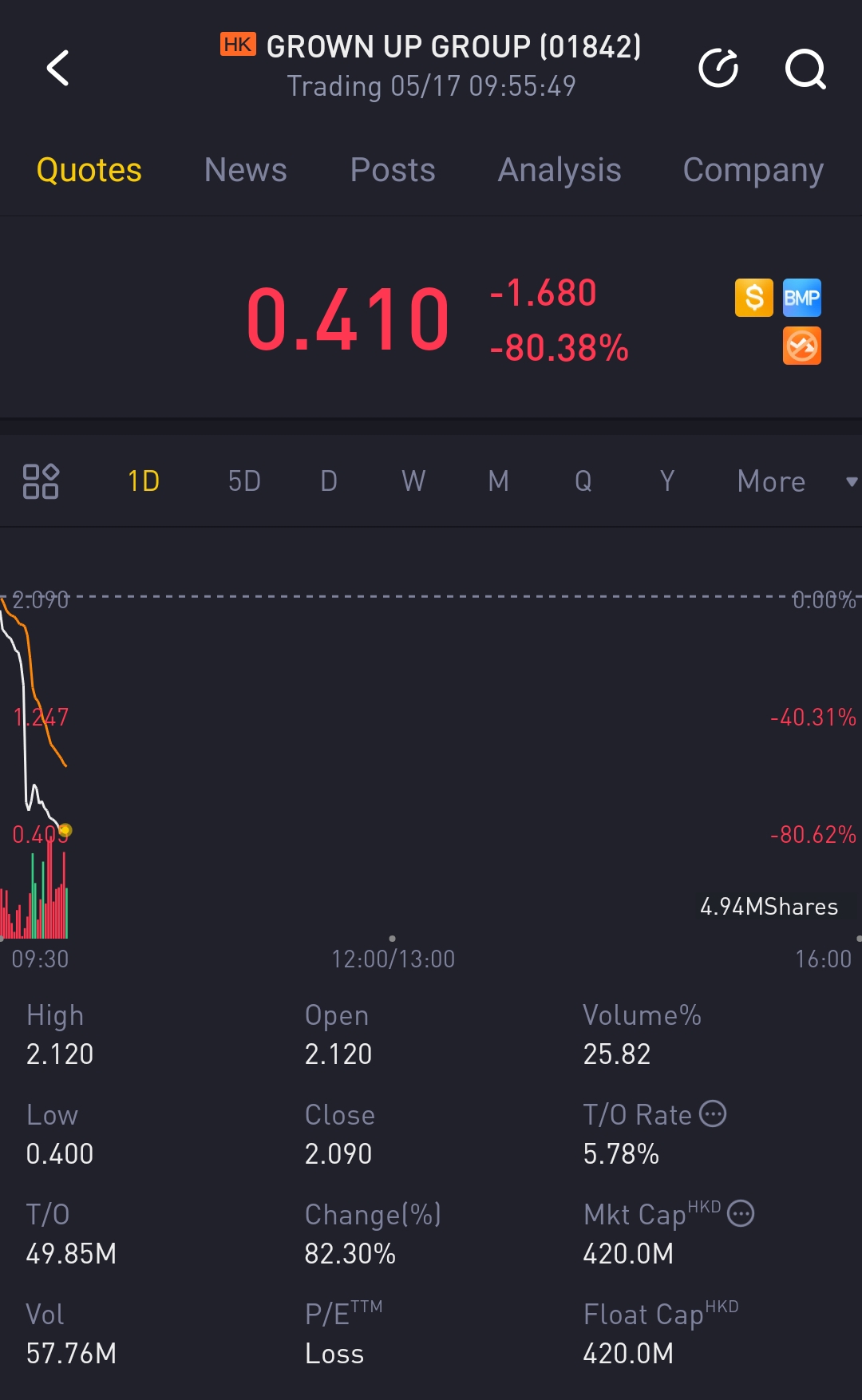 $GROWN UP GROUP(01842)$The 80% down arrived. Those who doesn't understand what is take profit and run. This is the feeling of us victim b4.. not to shake but to alert!