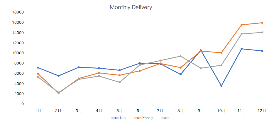 If compared with the three head new energy vehicle manufacturers in China, the performance of LI is better than $NIO Inc.(NIO)$and second to $XPeng Inc.(XPEV)$. If we take January into account, the LI has delivered over 10,000 yuan for three consecutive months.