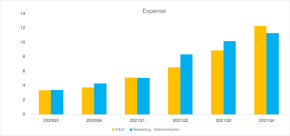 Q1 is usually the off-season of automobile sales. The management expects the delivery volume of Q1 to be between 30,000 and 32,000 vehicles, an increase of 138.5% to 154.4% compared with the first quarter of 2021, and the performance is still strong; Total revenue ranged from 8.84 billion yuan to 9.43 billion yuan, an increase of 147.2% to 163.7% compared with the first quarter of 2021.