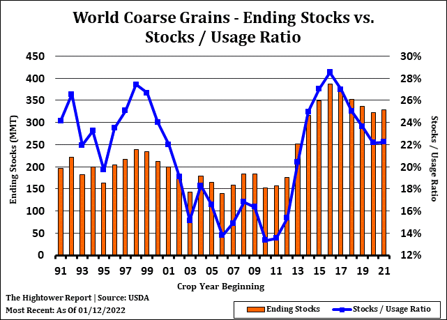The report shows that the Stock/Usage Ratio for agricultural commodities has seen a long-term pullback as global consumption continues to rise.