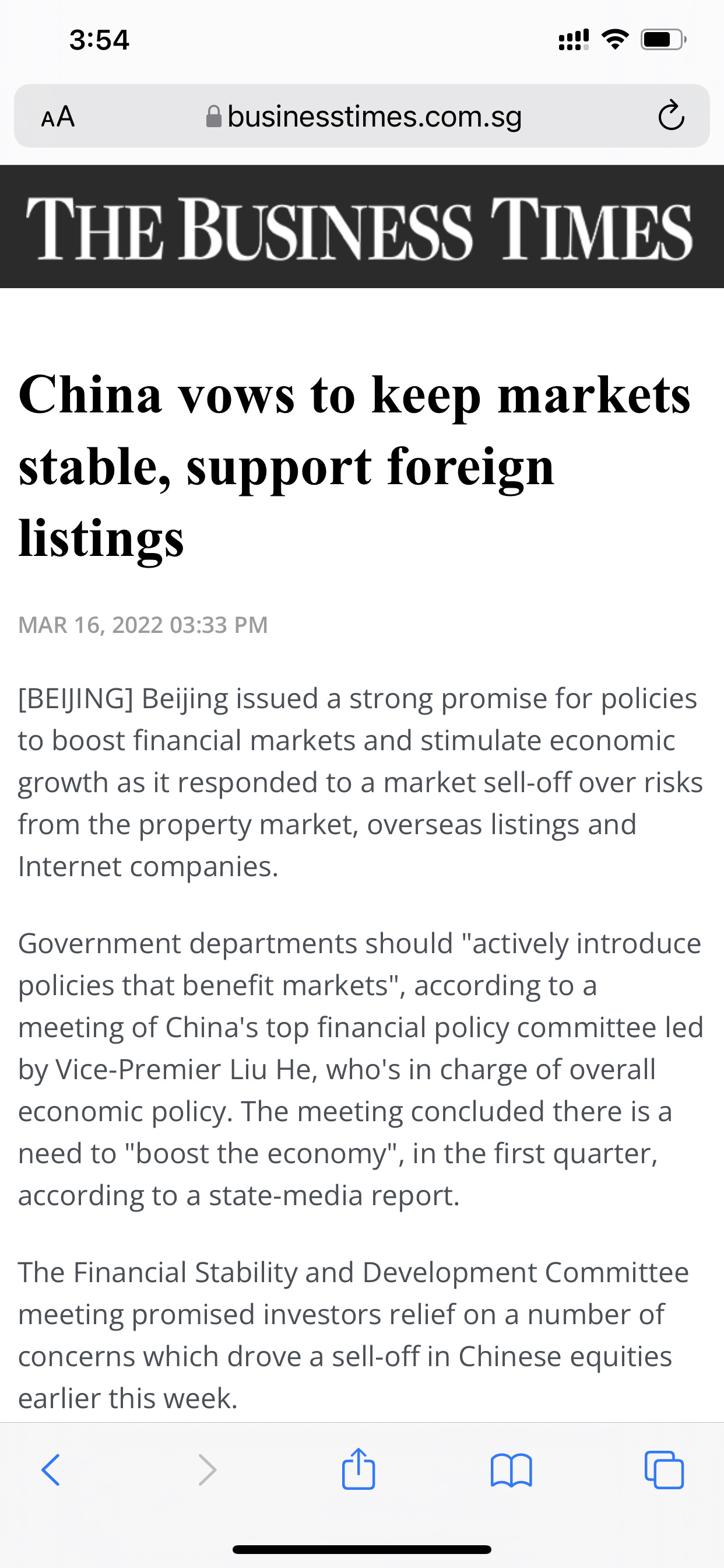 $Tiger Brokers(TIGR)$Beijing issued a strong promise for policies to boost financial markets and stimulate economic growth as it responded to a market sell-off over risks from the property market, overseas listings and Internet companies.