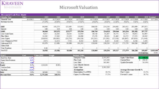Based on our previous analysis on Microsoft, we updated our revenue projections with the full year 2021 results and factored in Activision's revenue contribution in the table below.